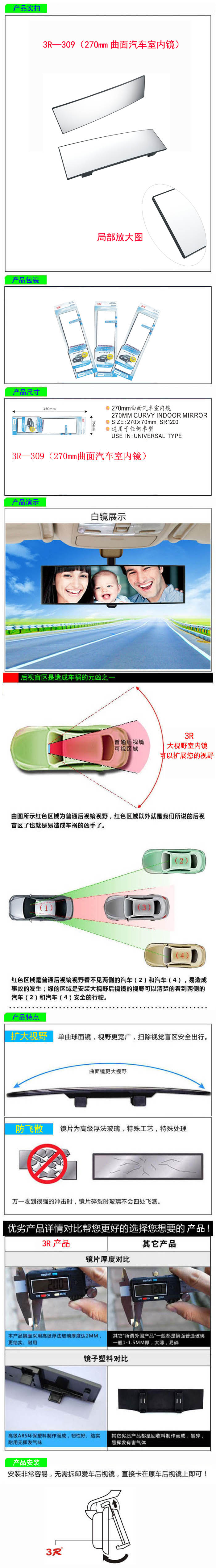 • 型號:   3R—309(270mm曲面汽車室內鏡)