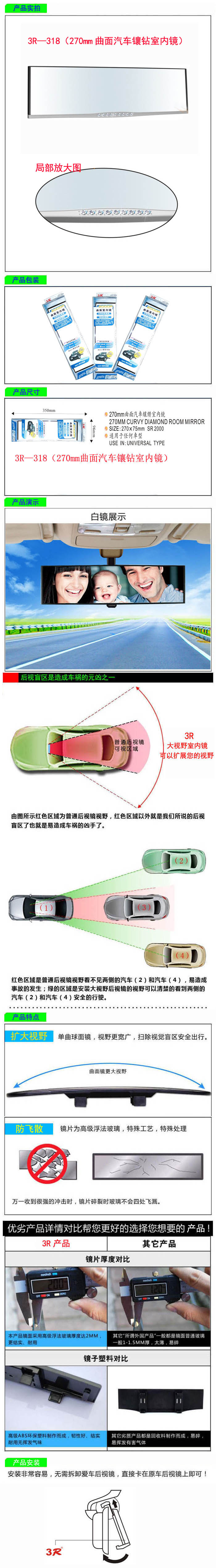 • 型號:   3R—318(270mm曲面汽車鑲鉆室內鏡)