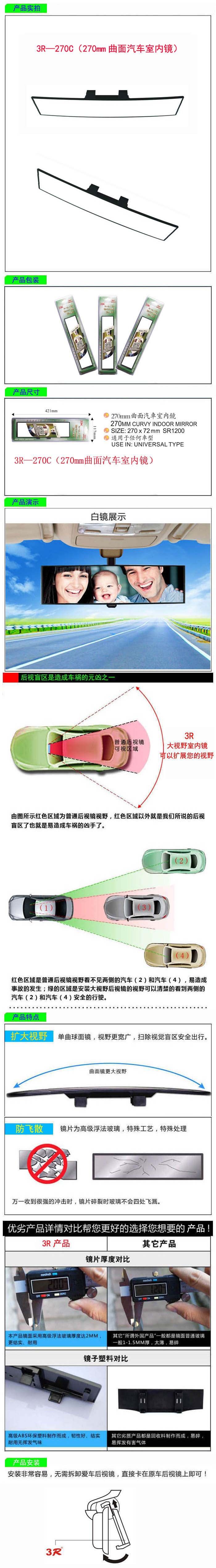 • 型號:   3R—270C(270mm曲面汽車室內(nèi)鏡)