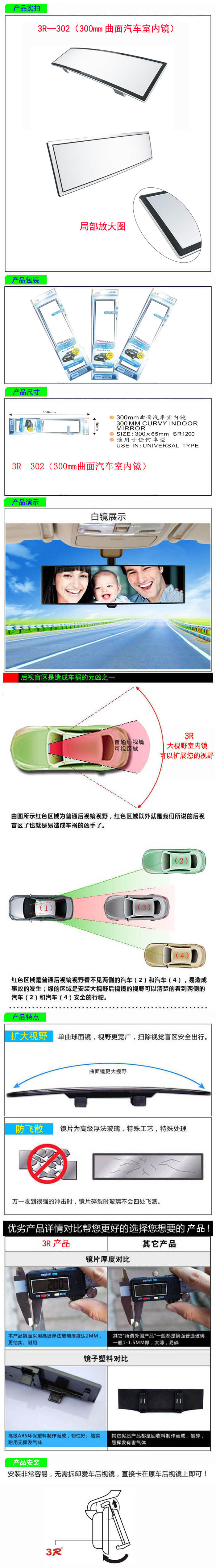 • 型號:   3R—302(300mm曲面汽車室內鏡)