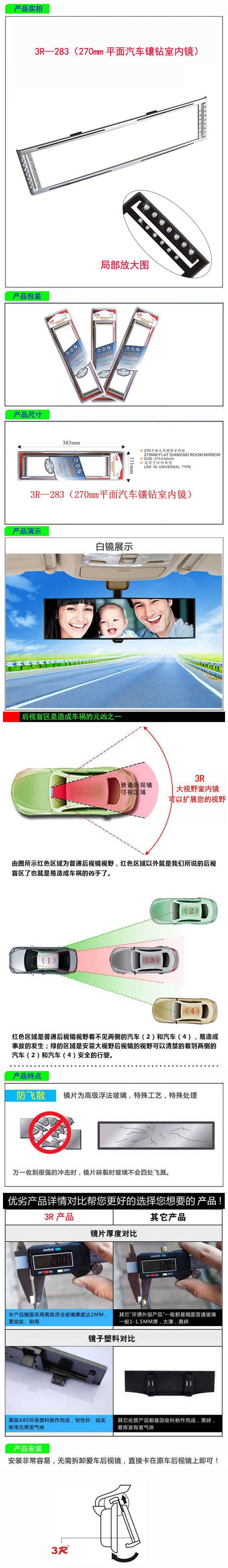 • 型號:   3R—283(270mm平面汽車鑲鉆室內鏡)