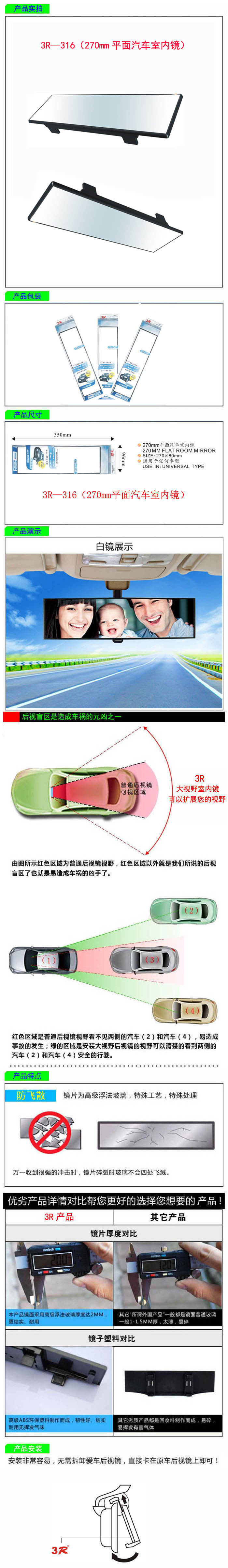 • 型號:   3R—316(270mm平面汽車室內鏡)