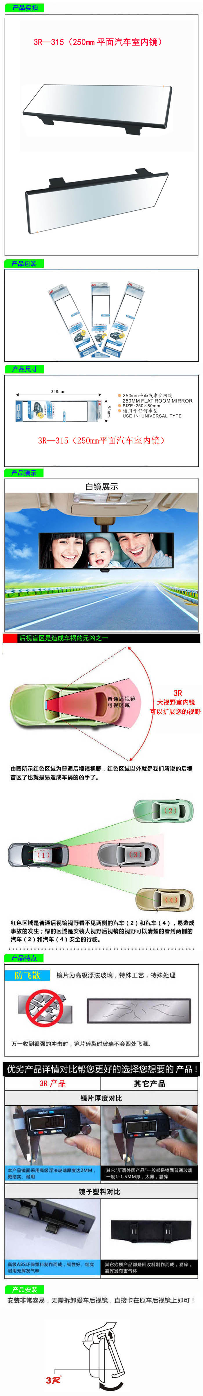 • 型號:   3R—315(250mm平面汽車室內(nèi)鏡)