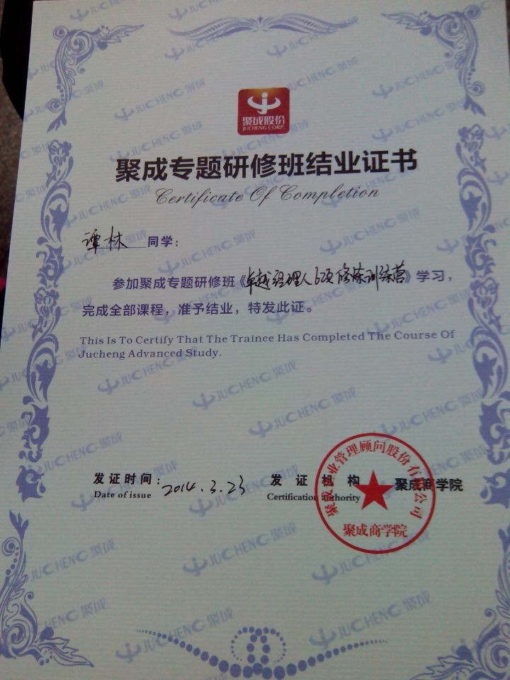 2014年3月22-23日,公司兩名管理人員前往佛山禪城區石灣賓館,參加聚成公司舉辦的〈卓越經理人6項修煉訓練營〉的培訓課程。